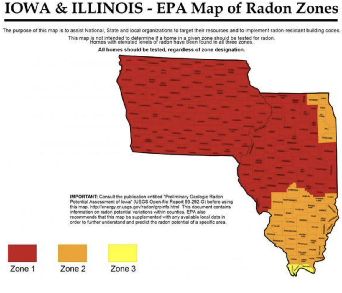 Radon gas is found everywhere but is particularly high in our area. Radon is a naturally occurring decay product of the breakdown of the Uranium atom, hundreds of feet below the soil.